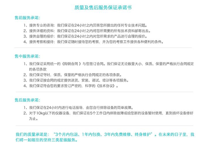 合眾電氣一直致力于電測設備的研發和生產,為了生產出性能可靠,質量過硬能寧客戶滿意的設備我們合眾人一直在努力,我們的質量承諾是:“三個月內包退、一年內免費維修、終身維護”。在未來的日子里我們將一如既往的堅持三類星級服務。我們合眾除了對質量做出了承諾以外,我們還有一套完整的售前、售中、售后的服務承諾,所以各位尊敬的新老客戶可以放心的選購合眾電氣的設備。 |