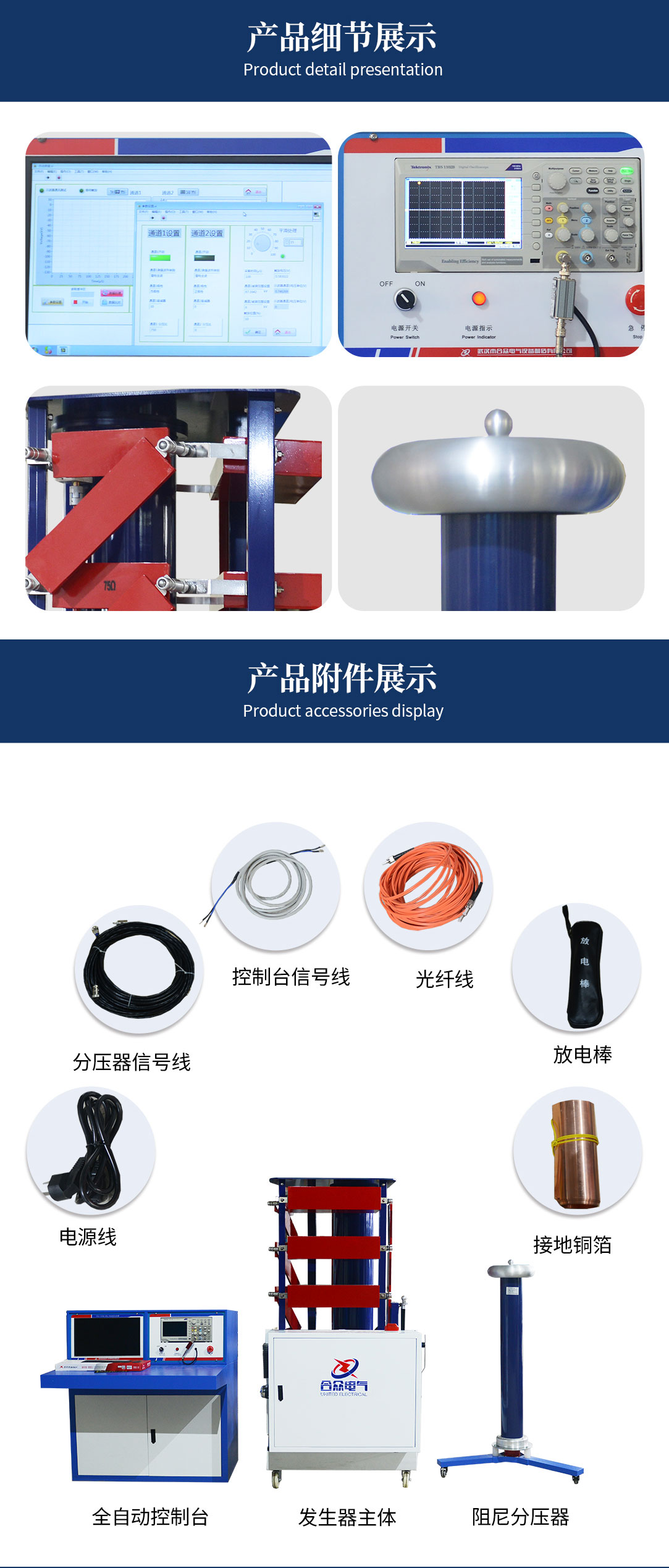 波頭時間:1.2±30%μs,波尾時間:50±20%μs,過沖:小于5%,效率:不低于90%?!?.2/50μs標準雷電沖擊電壓全波,效率大于90%。