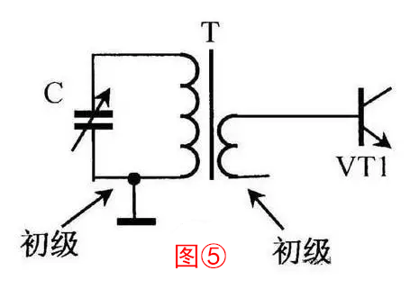 6、高頻變壓器通常是指工作于射頻范圍的變壓器。收音機的磁性天線就是一個高頻變壓器,初級線圈與可變電容器C組成選頻回路,選出的電臺信號通過初、次級之間的耦合傳輸到高放或變頻級VT1(圖⑤)。