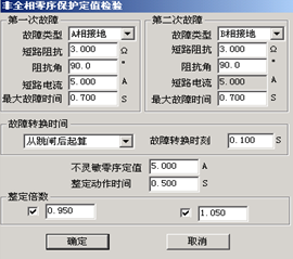 0.95倍與1.05倍的整定倍數是針對第二次故障時“非全相零序定值”的。所以微機繼電保護測試儀窗口中的“不靈敏零序定值”必須依照保護實際的整定值設置。第二次故障的“最大故障時間”應大于非全相零序保護的“整定動作時間”。