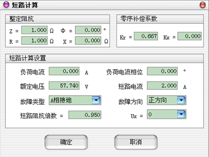 單擊微機繼電保護測試儀(鍵盤版)“短路計算”,可進入短路計算公式的參數設置對話框: